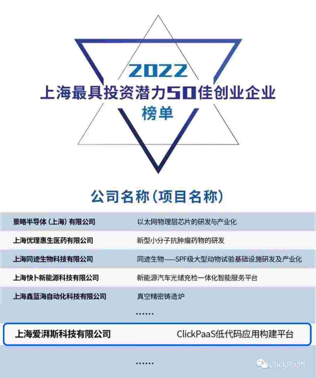 钱能钱包 作为国内低代码PaaS平台的领军企业,,与120家创企入围角逐。。。期间接受了来自德同资本、、、领中资本等知名投资机构的10位投资人组成专家评委团的背靠背盲选。。。并最终入围“2022上海最具投资潜力50佳创业企业”榜单,,,,被列入“上海市重点培育创业企业库”。。